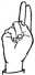 На ћирилици написано САВА ОГЊЕВИЋ састоји се из 11 слова [?]. Исписано ћириличном једноручном азбуком за глувонеме:
